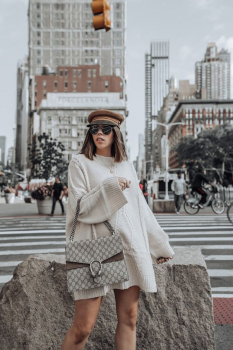 Модные street-style образы с платьем-свитером  © pinterest.com