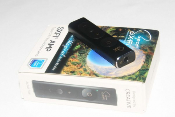 Самым интересным продуктом стала звуковая карта с революционной технологией супер аудио-голографии Creative SXFI AMP размером с палец. Устройство подключается к с помощью USB Type-C или переходников. Встроенный чип Super X-Fi UltraDSP обрабатывает чистый цифровой звук, поступающий по USB, согласно вашему профилю. Затем этот цифровой звук преобразовывается в аналоговый с помощью качественного ЦАП высокой чёткости и усиливается встроенным усилителем. После звук идёт на наушники через 3.5-мм разъём. Усилитель способен «раскачать» любые наушники вплоть до студийных с сопротивлением до 600 Ом. Также используется отдельный 128dB hi-end ЦАП AKM 32-bit высокой чёткости. Это обеспечивает максимальную чёткость и высочайшее качество звука с качеством до 120dB SNR, и 0.0003% THD, что превосходит большинство более дорогих усилителей наушников на рынке. SXFI AMP выполнен в привлекательном алюминиевом корпусе, что делает его не только компактным, но и крепким.