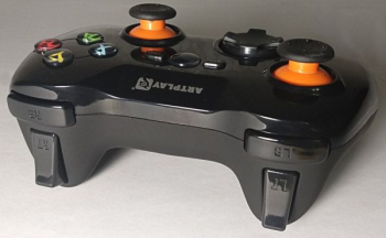 Artplays AC55 очень сильно напоминает джойстик от игровых приставок Microsoft Xbox – сходство есть как в дизайне самого корпуса, так и в расположении всех кнопок. Геймпад выполнен из пластика и покрашен в черный цвет, но если верхняя панель глянцевая, то нижняя имеет матовое покрытие, напоминающее пластик Soft Touch.