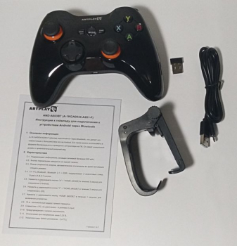 В коробке, помимо самого джойстика Artplays AC55, находится довольно много аксессуаров. В первую очередь это, конечно же, специальное крепление для смартфона, которое мы рассмотрим отдельно немного позже. Также здесь имеются кабель для зарядки геймпада, USB-адаптер для подключения к ПК и инструкция по эксплуатации.