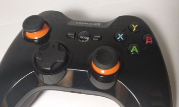 На «лице» джойстика расположены два стика, крестовина, кнопки XAYB, а также клавиши Back, Mode и Start. На передний торец вынесены все четыре шифта, снизу есть утопленная в корпус кнопка Reset для перезагрузки, а между «рогами» производитель поместил вход microUSB 2.0 для зарядки. По центру верхней панели расположены четыре светодиода, сигнализирующие о текущем режиме синхронизации.