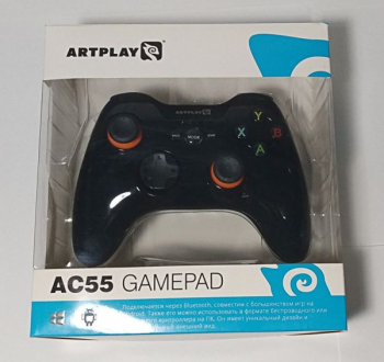 Список характеристик джойстика Artplays AC55 приведен как на коробке, так и в комплектной инструкции. Сведения в нем предоставлены исчерпывающие, за исключением информации о времени автономной работы, но и в сторонних источниках этот параметр не указывается.