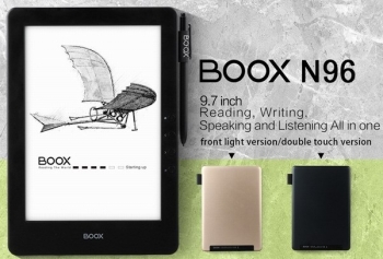 Ридер Onyx Boox N96/N96ML работает на базе ОС Android 4.0, что при его габаритах превращает его в практически полноценный планшетный компьютер, ведь экран здесь располагает 9,7-дюймовой диагональю при разрешении 1200×825 пикселей. Это сенсорный экран на электронных чернилах поколения Pearl HD, а в модели N96ML к нему прилагается еще и подсветка Moon Light молочного цвета на основе специальных светодиодов. В список характеристик книги Onyx Boox N96 вошли процессор с тактовой частотой 1 ГГц, 16 Гб встроенной памяти, 512 Мб ОЗУ, поддержка карт microSD и модули WI-FI 802.11 и Bluetooth 4.0 вместе с 3,5-миллиметровым входом по наушники. Вторая модель наделена, помимо подсветки, еще и 1 Гб оперативной памяти.