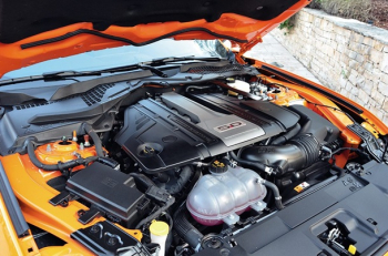 Презрев назойливые тренды, мотор GT-версии не то что не потерял в объеме, но даже приобрел. Буквально чуть-чуть, но факт остается фактом: было 4951 см3, стало 5038 см3. Из всех восьми цилиндров вытащили гильзы, заменив их тончайшим плазменным напылением на стенках – это во многом объясняет рост объема. А за прибавку в динамике отвечает в том числе новая комбинированная система впрыска — топливо теперь попадает прямо в цилиндры, отчего пятилитровый атмосферник стал заметно отзывчивее на низких оборотах. Но свой бойцовский характер двигатель по-прежнему раскрывает только на высоких. Цивилизация, конечно, подступает к Мустангу, но аккуратно. Так, теперь можно заставить его понизить голос: у обновленной машины появился тихий режим работы выпускной системы. Водителю дозволено не только «уменьшить громкость», но даже запрограммировать в бортовом меню временной интервал ограничения. Например, каждый день с 7 до 8 утра Mustang будет не реветь, а тихо бурчать, чтобы не разбудить соседей.