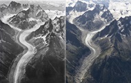 Ученые повторили полет швейцарского фотографа, снявшего альпийские ледники 100 лет назад и сравнили снимки.