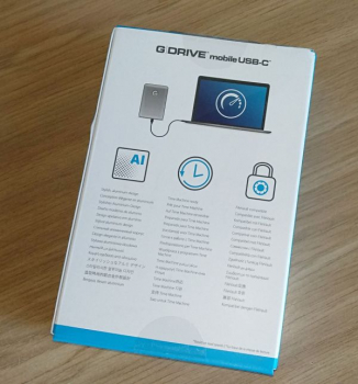 Даже если вы ничего не знаете про G-Technology G-Drive mobile USB-C, то  ради сведений о нем не нужно идти в интернет. Коробка, в которой он поставляется, информативна на 110 процентов. Выполненная из прочных материалов и красиво оформленная, она сразу покажет, как выглядит находящийся в ее недрах гаджет и расскажет о его основных спецификациях.