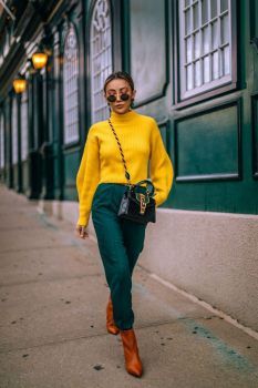 - Водолазка. В холодную погоду весной не забывай о водолазке. Придаст хорошего настроение и теплоты уютный желтый оттенок свитера.
