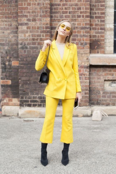 - Блейзер. В гардеробе каждой девушки должен присутствовать хотя бы один блейзер, ведь его можно внедрять не только в деловой стиль. Этой весной комбинируй блейзер желтого цвета с широкими брюками, джинсами с завышенной талией, длинной юбкой и кюлотами.