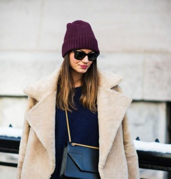 - Шапка из крупной вязки. Этой зимой обрати внимание на объемную шапку крупной вязки. Особенно стильно смотрятся изделия из крупной вязки, которые станут ярким акцентом. Также стоит помнить, что выбирая объемный головной убор важно уравновесить его громоздкость с помощью облегающей одежды: приталенного пальто, скинни-джинсов, облегающего свитера.