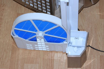 Далее находится фильтр тонкой очистки, выполненный из гофрированного волокнистого материала. Здесь улавливается практически все мельчайшие загрязнения, включая не только пыль, но и органику. Используемый HEPA-фильтр задерживает около 99,95% частиц размером более 0,06 микрон. Производитель рекомендует заменять его раз в год. За ним расположен угольно-керамический фильтр, удаляющий запахи и вредные для здоровья соединения формальдегида. Он прослужит до трех лет.