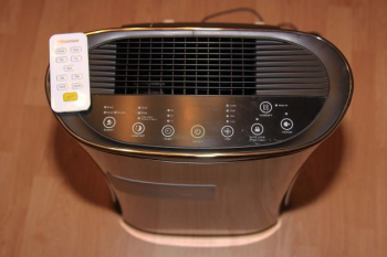 Большинство аналогов ECOLife имеют невзрачный дизайн, больше похожий на белую пластиковую коробку, чем элемент интерьера. В Hisense же уделили значительное внимание внешнему виду устройства: здесь реализовано футуристическое сочетание форм и линий, плавно перетекающих друг в друга. Пластиковый корпус покрыт глянцевой золотистой краской, часть элементов — серебристые. На верхней панели овальной формы расположены сенсорные клавиши управления и отверстия для выхода воздуха. Затягивается же он через декоративную решетку, расположенную на задней стенке с помощью расположенного в корпусе вентилятора. Габариты устройства 433x638x312 мм, а вес 10,5 кг. Для удобства, на нижней части имеются колесики, а сверху находится ручка для переноски.