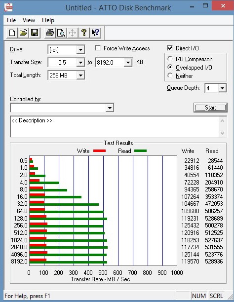 — ATTO Disk Benchmark (запись): 520 МБ/с