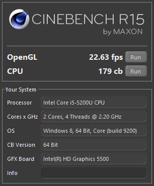 — Cinebench R15 (OpenGL): 22.63 fps