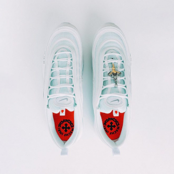 Южнокорейский бренд MSCHF решил ответить на вопрос «Что носит Иисус» и выпустил пару священных кроссовок под названием Jesus Shoes. Марка использовала кроссовки Nike Air Max 97, и залила внутрь воздушной подушки платформы святую воду из реки Иордан.