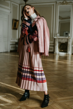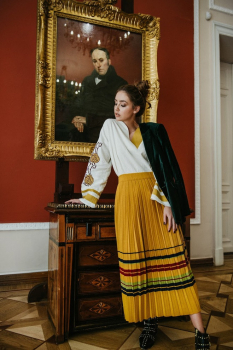 Этой осенью дизайнер предлагает обратить внимание на вышитые рубашки в сочетании с плиссированными юбками. Также модельер рекомендует носить вязаные кардиганы в пол с украинской вышивкой.