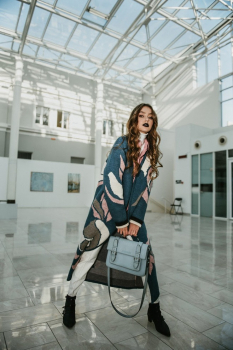 Если позволяют погодные условия, носи плотный вязаный кардиган макси-длины поверх шелкового платья. Грубые ботинки добавят нотку рок-н-ролла и завершат образ.
