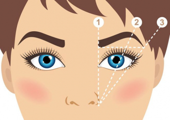 - а теперь перемести карандаш так, чтобы он все еще прижимался к крылу носа, но линия пересекала внешний край роговицы. Точка пересечения карандаша с бровью станет местом изгиба.