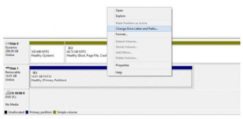4. кликните по нему правой кнопкой по нему и выберите «Изменить букву диска», после чего выберите любую другую букву из доступных и нажмите «ОК».