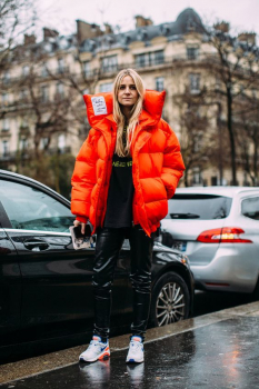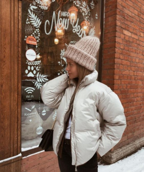 - Короткий пуховик. Стильный и комфортный вариант для теплой зимы. Отлично подходит для стритстал-нарядов и оверсайз-луков. Помни, что для холодной погоды он не подходит, а также его не рекомендуется сочетать с юбками.