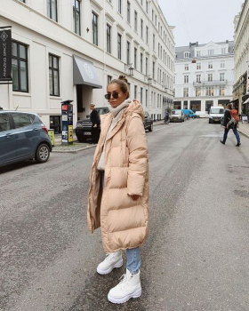 - Длинный пуховик. Такая модель подходит для любого роста и возраста. В нем тепло, комфортно, его можно носить как с брюками, так и с юбками. Минус длинного пуховика в том, что из-за слякоти его подол может стать грязным.