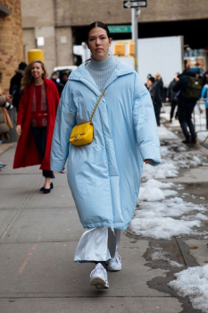 Пуховики-одеяла все еще актуален. Они теплые, универсальные и комфортные. Такие модели подходят как стройным девушкам, так и обладательницам фигуры plus-size. Под пуховик-одеяло выбирай грубые ботинки на толстой подошве и кроссовки.