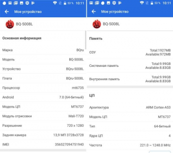 — процессор: MediaTek MT6737, 4 ядра, 1,3 ГГц;