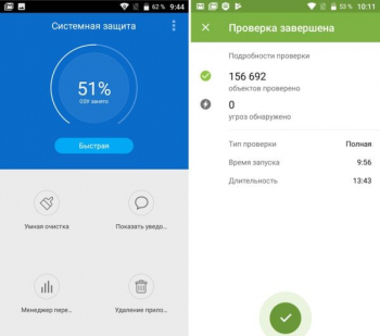 Отдельно отметим фирменную утилиту «Системная защита», при помощи которого можно отслеживать мобильный интернет-трафик, удалять приложения и проводить очистку внутренней памяти от скопившегося в ней мусора.