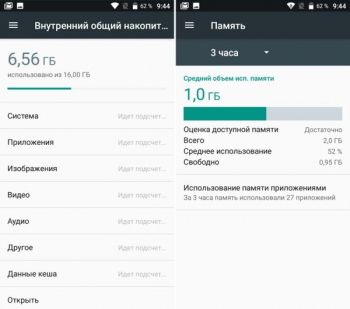 После первой загрузки пользователю доступен 1 Гб ОЗУ из общих 2 Гб и 9,4 Гб дискового пространства из 16 Гб. Удаление стороннего ПО и очищение кеша освободит очень много места, так что советуем сразу сделать это. Проверка антивирусом Dr. Web со свежими базами в программной части смартфона вредоносного софта не выявила.