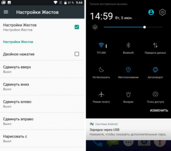 На BQ Brave установлена ОС Android 7 Nougat со стандартным интерфейсом Material UI от Google. Прошивка имеет ряд изменений: добавлено меню управления жестами и немного перерисована верхняя шторка, ставшая, на наш взгляд, более симпатичной. Возможность менять расположение кнопок под экраном в нашей версии прошивки не предусмотрена, хотя они нарисованы просто в виде точек, что позволяет легко «зеркалить» их.