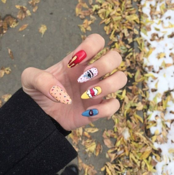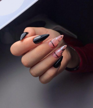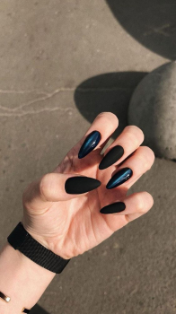 Мы не всегда светимся от счастья, а значит разноцветные ногти иногда должны уступать мрачным и черным. В общем, смотри сама.