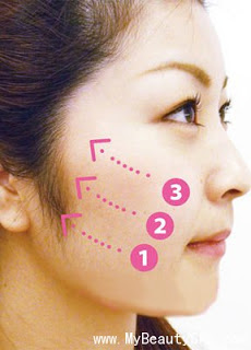 Вам понадобятся 2 чайные ложки, что бы разгладить область вокруг рта. Двигайтесь от подбородка к носу. Используйте поглаживающие движения и двигайтесь по схеме массажных линий (наименьшего растяжения кожи)