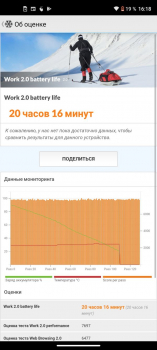 В Moto G9 Plus установлена большая батарея емкостью 5000 мАч. Огромный экран не позволяет добиться рекордной автономности, но пару суток с включенным режимом энергосбережения, телефон, обычно, выдерживает легко. Если сосредоточиться на чем-то одном, то получим 16 часов просмотра видео или до 8 часов игр. В тесте PС Mark, аккумулятор продержался более 20 часов.  Motorola комплектует смартфон фирменной зарядкой с технологией Power Delivery 3.0 на 30 Вт. С ее помощью удается зарядить устройство до 50% за 35 минут, а для полного восстановления энергии требуется 1 ч 25 минут.
