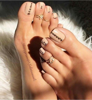 Если идея с желтым педикюром на Новый год 2018 тебе не нравится, тогда попробуй сочетать в дизайне золотистые оттенки.
