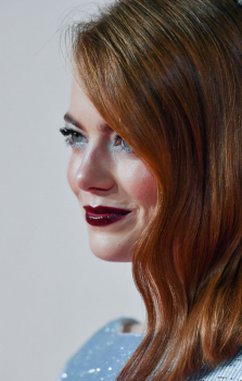 Над макияжем Эммы Стоун работала визажист Рейчел Гудвин, которая решила сделать акцент на губы, используя лайнер и глянцевый блеск винного оттенка. Глаза Рейчел Гудви решила подчеркнуть актрисе сияющими серебристыми тенями.