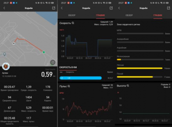 Раздел «Тренировка» содержит 11 различных активностей: бег на улице, беговая дорожка, велосипед, велотренажер, ходьба, эллипс, гребной тренажер, йога, скакалка, бассейн и вольные упражнения. Поскольку собственный GPS-приемник в браслете отсутствует, он пользуется сигналом с телефона. Это позволяет записывать трек и более точно вычислять расстояние. Для выхода из режима тренировки, требуется удержать многофункциональную клавишу. В городе пробежка часто прерывается неожиданной остановкой перед светофором, и Amazfit Band 5 умеет определять такие моменты и приостанавливать запись. Больше же всего меня порадовала функция автоматического запуска. Приведу пример: решили вы прогуляться, прошли несколько сотен метров, и тут браслет вам посылает уведомление, что вы не просто гуляете, а вполне себе тренируетесь, предлагая записать активность. Если согласитесь, то активируется тренировка «Ходьба», причем, будет учтен и тот отрезок, что вы прошли до уведомления.