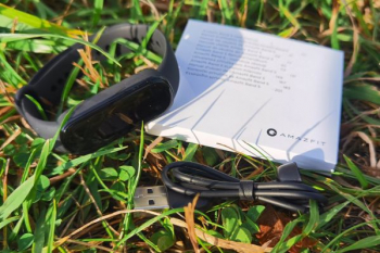 Устройство продается в компактной белой коробке. Для вскрытия необходимо выдернуть специальную ленту сбоку, безвозвратно повредив упаковку. Это создает определенную уверенность в том, что браслет был упакован именно на заводе. Внутри находится сам герой обзора, магнитная зарядка к нему и толстенный мануал на 12 языках.
