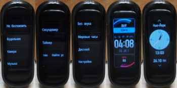 Поскольку функционал браслета очень богатый, а плодить ярлыки до бесконечности невозможно, все оставшиеся функции сгруппированы в меню «Дополнительно». Тут можно активировать режимы «Не беспокоить» на часах или телефоне, выбрать будильник, запустить удаленное управление камерой или музыкой, включить секундомер или таймер, посмотреть время в других городах, настроить яркость и время отключения экрана, а также выбрать циферблат из тех, что загрузили в приложении.