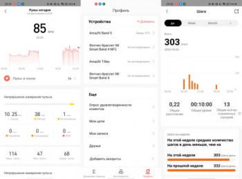 Amazfit Band 5 обладает широкой функциональностью. Встроенный 3-х осевой акселерометр вместе с гироскопом довольно точно подсчитывают шаги, «не ведясь» на провокации вроде тряски в транспорте. На основе этих показаний вычисляются сожженные калории и пройденное расстояние. Все эти данные сохраняются в разделе «Статус», там же хранится информация о пройденных шагах за последние семь дней. Раздел «Пульс» позволяет принудительно измерить сердцебиение, а если включена опция автоматического отслеживания, то и оценить дневные показания. Браслет отказывается производить замеры, пока вы не наденете его на человеческую руку, чем грешили предшественники. Точность близка к показаниям профессиональных гаджетов для занятий спортом.