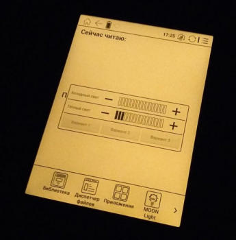 Если оригинальная Moon Light заливает экран молочно-белым холодным светом, с уходом в синие тона при максимальной яркости, то Moon Light+ предлагает уже два варианта свечения – теплый и холодный. Их можно и комбинировать, и использовать по отдельности, добиваясь оптимально подходящего цвета. Внедрение теплого света позволило снизить нагрузку на глаза без снижения уровня комфорта при чтении.