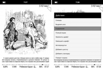 За открытие документов и книг отвечает программа Oreader, одна из самых лучших на рынке на сегодняшний день. Ключевой ее особенностью является колоссально удобный интерфейс, который при этом не перегружен графическими примочками: вы просто открываете нужную книгу и видите ее текст с небольшой шкалой прогресса снизу, а все остальное спрятано в меню, которыми очень удобно пользоваться.