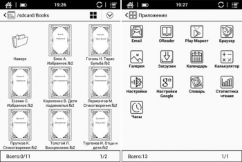 Из штатных приложений Android в ридере есть клиент электронной почты, галерея, календарь, калькулятор, часы и браузер. Пользоваться интернетом не очень удобно: страницы с большим количеством графики отрисовываются очень медленно.