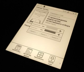 В Darwin 6 используется электрофоретический дисплей, то есть экран на так называемых «электронных чернилах». В отличие от Darwin 5, здесь используется панель с более высоким разрешением, и если на пятом поколении было очень комфортно читать даже на самых маленьких размерах шрифта, то здесь все еще лучше, плюс можно просматривать детализированные изображения. Правда, они в любом случае будут черно-белыми.