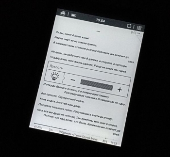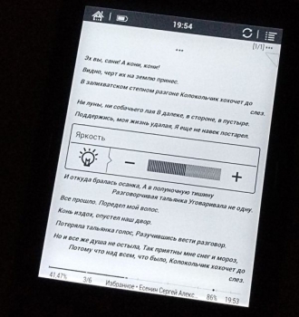 Регулировка яркости подсветки доступна в очень широком диапазоне и может вызываться как из основного меню, так и из Oreader – программы для чтения книжек.