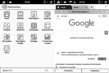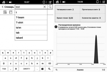 Из стандартного набора Google есть календарь, часы, калькулятор, клиент электронной почты и штатный браузер, плюс имеется доступ к каталогу Google Play, откуда можно скачать любое нужное ПО. От самой Onyx в книге есть приложение для подсчета статистики чтения и удобный словарь. Последний нужен для перевода незнакомого слова с английского на русский, а также объяснения его значения. Можно переводить слова и словосочетания, вводя их вручную или копируя из напрямую из открытой книги.