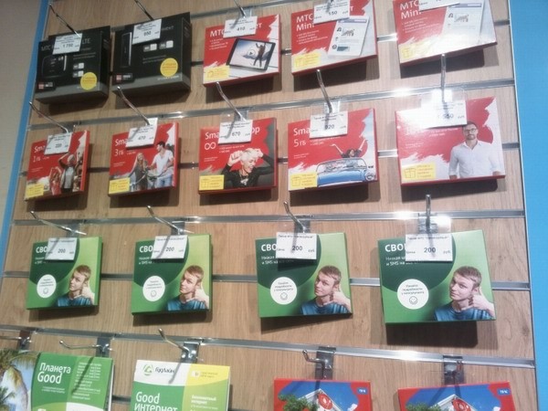 Оператор связи «МТС» стал продавать свои SIM-карты в цветах конкурентов с целью ввода потенциальных абонентов в заблуждение, и это понимает даже ребенок. «МегаФону» это совершенно не понравилось, и он уже готовит обращение в ФАС, попутно подготавливая документы для жалобы в суд. На снимке видно, как «МТС» копирует идеи дизайна двух операторов, но рядом висят «лже-билайновские» SIM-карты. «МТС» пока никак не комментирует все это, но коробки, оформленные под чужим дизайном, были найдены в салонах связи «Телефон.ру».