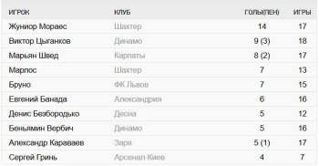 По результатам осенней части сезона, донецкий Шахтер остается на первой строчке таблицы, киевское Динамо в последнем туре заняло второе место, а Александрия опустилась на третье.