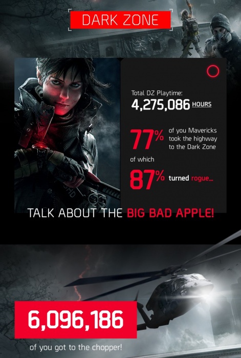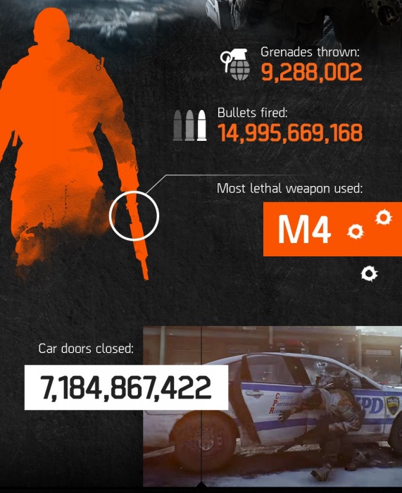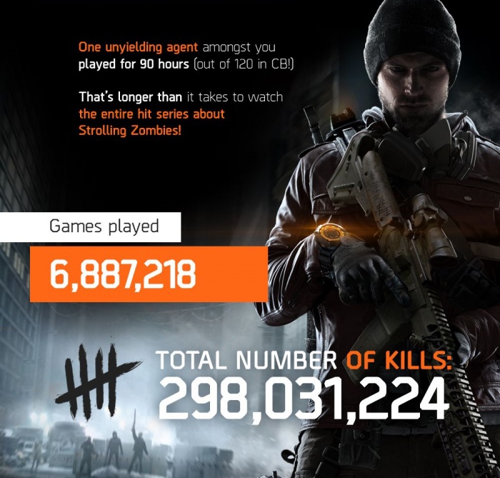 Кстати, Ubisoft нарисовала инфографику по итогам предыдущей «беты». Оказывается, один особо упоротый упорный агент ухитрился провести в The Division 90 часов из возможных 120!