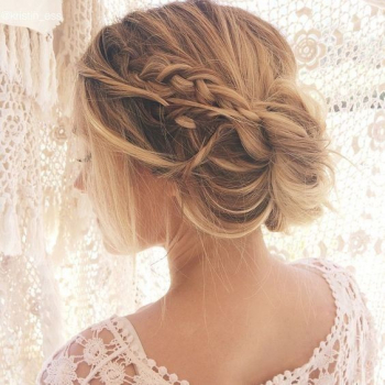 - Косы. Также в моде этим летом будут различные косы на короткие волосы. Лучше всего собрать локоны вокруг лица и зафиксировать их в виде косы на затылке. Дополнить такой образ можно модными шпильками или живыми цветами.