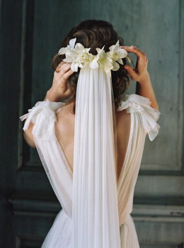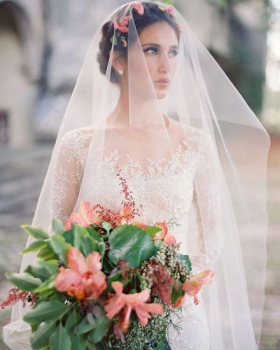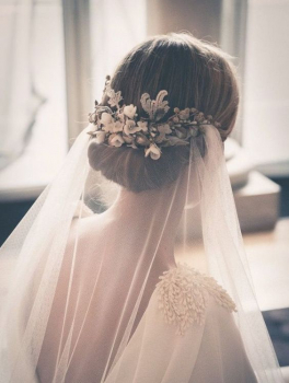 Так, например, если ты обладательница длинных волос, присмотрись к таким прическам с фатой: элегантный пучок, аккуратно собранные волосы, различные плетения кос. Можно также распустить волосы и сделать пляжные локоны. В качестве дополнения можешь использовать цветочные украшения.