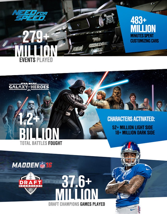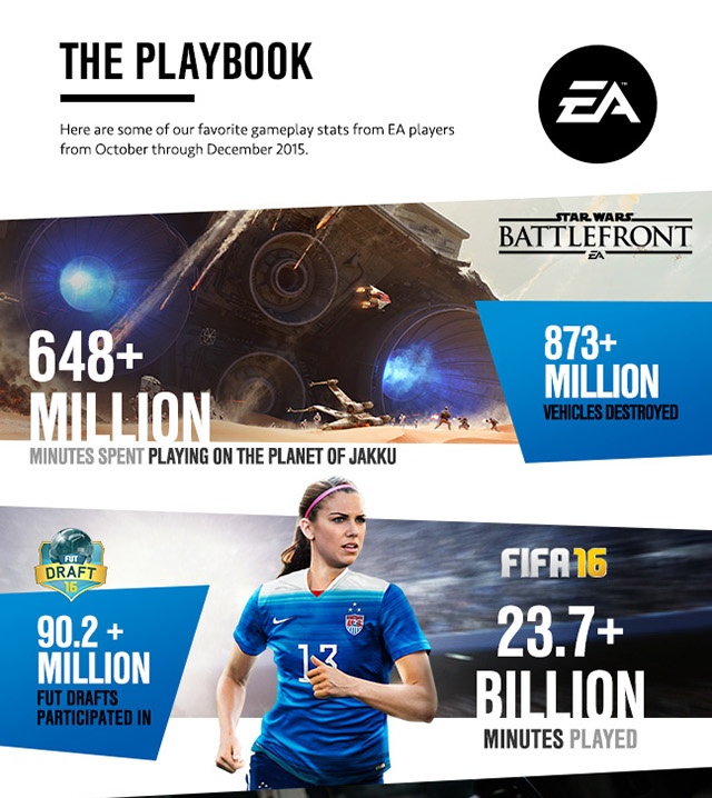 Наконец, для простых смертных, которые в Electronic Arts ничего не инвестировали, компания подготовила занимательные инфографики с бесполезными, но красиво выглядящими циферками.